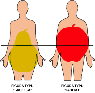 - otyłość gynoidalna (pośladkowo-udowa) – typu gruszka,